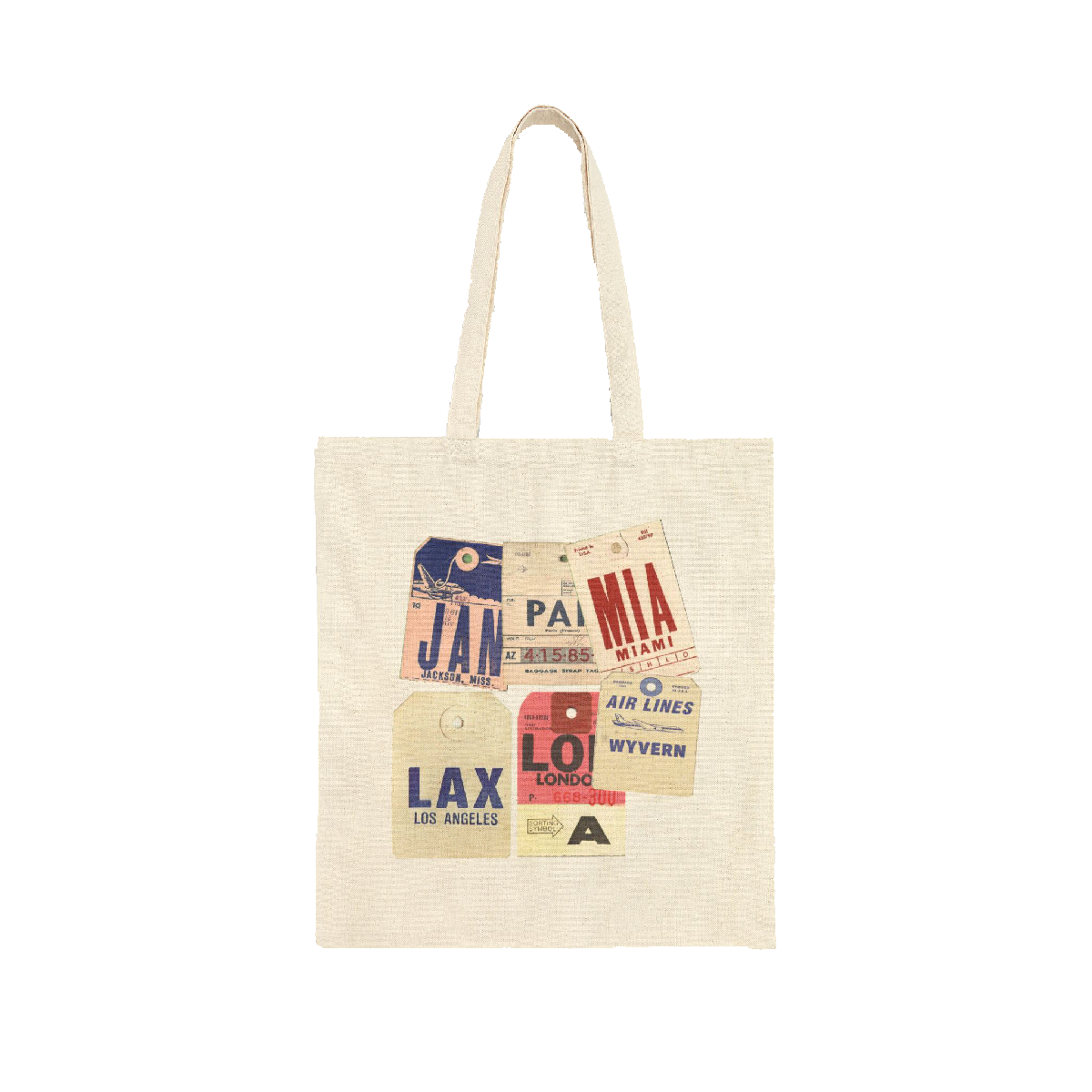 Tote bag featuring our Luggage Tag design. Inspired by traveling the world.